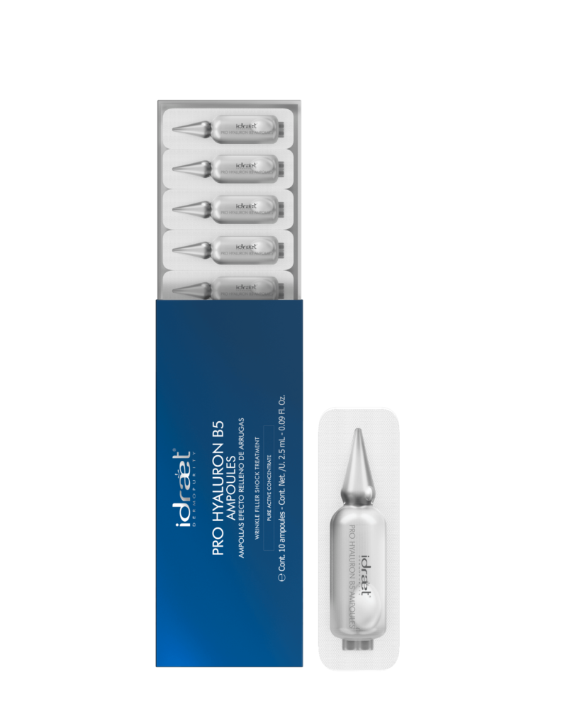 Ampolla ultraconcentrada con efecto relleno de arrugas mediante la penetración transdérmica de ácido Hialurónico. Tratamiento shock para minimizar las arrugas faciales.